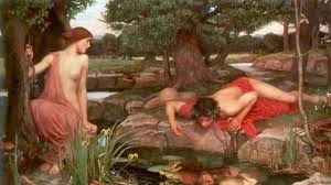 própria imagem refletida na superfície da água. Foi a primeira pessoa que olhou